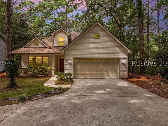 Charming 3 BR/2 BA home in the desirable North End of HHI, nestled in quaint Chinaberry Ridge. Located on the end of a quiet, cul-de-sac street, this bright and inviting home features vaulted ceilings, wooded views, and a spacious eat-in kitchen with stainless steel appliances and abundant storage. Additional highlights include a welcoming foyer, laundry/utility room, 2-car garage, split BR layout, front porch and rear deck, and interior stairs leading to an unfinished upper area-- perfect for extra storage or a potential future living space. Prime Island location close to schools, rec center, shopping, dining, and more. Exceptional value and opportunity--this one will not last!