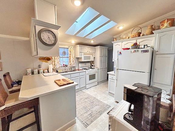 Great double wide mobile home ready for new owners to call home! This bright spacious home has a large living room, kitchen with peninsula and dining area great for entertaining. Primary bedroom suite with full bath and walk-in closet at one end of home, full bath and 2 large bedrooms at other end for privacy. Laundry area off kitchen, lovely enclosed porch with lots of storage, central air and a shed for additional storage. Coop park, pet friendly, has a playground and inground pool! Come check it out - showings start at Open House Sat. 2/3 10-12. Park approval required.