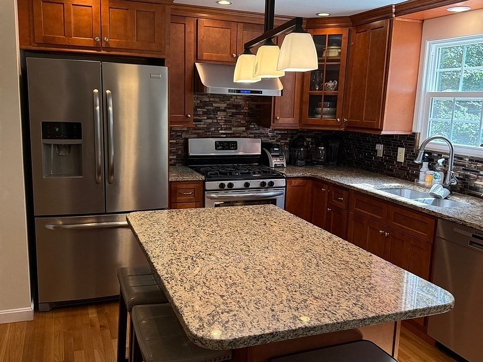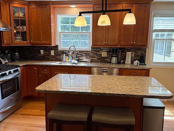 Meticulously maintained 3-bedroom, 2.5-bath Colonial on a quiet cul-de-sac in the Bird Street area! Convenient proximity to the lake, highway and town center. The home features two-zone heating and central air conditioning, abundant natural light, and gleaming hardwood floors throughout. The custom cherry kitchen includes granite counters, stainless steel appliances, a vented hood, and ample cabinetry, opening to a cathedral-ceiling sunroom with walls of windows. A fireplaced family room, formal dining room, spacious living room, laundry, and updated half bath complete the first floor. Upstairs, the private primary suite offers a walk-in closet and updated bath, complemented by two additional large bedrooms and another updated full bath. The finished lower level provides a playroom, mudroom with storage, and access to the two-car garage. Set on a private lot with a spacious fenced-in backyard, this home combines comfort, convenience, and charm. Showings will begin on Sat 9/20.