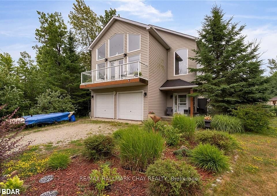 This home is located steps from Georgian Bay on a quiet street. This home is unqiue in design offering different levels of living space. Primary bedroom is on main floor with a walk out to a private deck. Primary also offers a 5 piece ensuite and walk in closet. The eat in kitchen is a spacious and has a walk out to deck over looking the private yard. This floor also offers a powder room. The next level offers a grand living area with cathedral ceilings, gas fireplace, walk out to a front deck. Wall of windows and some unique transom windows allow bright light into this inviting space. The top level offers an office space and 2 generous sized bedrooms with vaulted ceilings. 4 pc bathroom on the upper level. The double sized garage has inside entry to the house and has been segregated into a studio in one of the bays. Can easily be used as a garage space if needed. The basement is unfinished with very high ceiling and big windows offering yet again another bright living space. Used as storage but can easily be made into a bedroom and recreation room if needed for more space. This home is interesting and has a great beach house vibe. Would make a great home or recreation property.