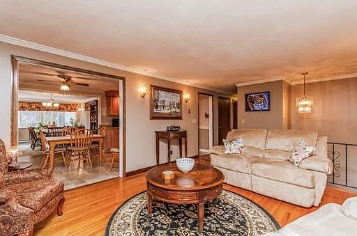 Welcome home to gleaming hardwood floors throughout. Relax downstairs in your cozy Den with slate flooring and pellet stove or invite everyone over for a party in the open eat-in Kitchen where entertaining is a breeze as its open to your impressive over sized Dining room. Nice weather, lets open up the slider to your 3 season porch or move the party outside on your level lot filled with delicious blueberry bushes, your own personal vineyard, and expansive garden. Have Company in from out of town, a grown child not ready to fly or parents who need care? Well you're all set to accommodate with your convenient downstairs summer kitchen, bath and extra bedroom. Sellers are original owners and have updated, kept immaculate care of this warm family home for 36 yrs. Now its ready for a new family to turn the key and be home. NEW AND IMPROVED PRICE!