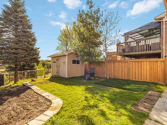 Visit REALTOR website for additional information. Updated 3 BR 2 storey home w finished walkout basement on ravine lot backing green space, trails & creek. Well maintained family home in quiet mature neighbourhood close to schools, parks, rec facilities, walking/biking trails. Easy access to GO Bus & Hwy 401/418/407. Great curb appeal w large 4 car interlock brick driveway. Nicely landscaped. Deep 129' lot. Fenced backyard w patio, vegetable garden & shed. Gorgeous ravine views w lots of privacy. Large living room w hardwood flooring. Eat-in kitchen has tile backsplash, gas stove & walkout to 12'x22' sunroom w gas fireplace, skylights & beautiful views. Hardwood staircase to 2nd level. 3 good sized bedrooms, 4 pc semi ensuite bath & walk-in closet. Lower level boasts hardwood staircase, laminate floor, family room, pot lights, Murphy bed, 3 pc bath, laundry & walkout to hot tub room.