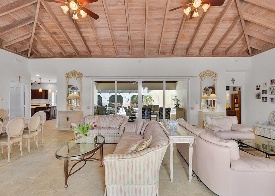 This is a very easy living 3 bedroom, 4 bath home with some wonderful interior architectural features. The main living room ceiling is exceptionally high and features exposed wood and framing beams. This spacious living room is ideal for family gatherings or entertaining. The Living room opens to an additionally large covered patio with a similar high ceiling with exposed woodwork. Outdoor living on the pool patio is ideal on sunny days or cool evenings. The three bedrooms with full baths are complimented by an large den capable of hosting additional guest with its full shower and bath. The office or den area could be easily enclosed as a 4th bedroom option as well. The master bedroom is spacious and has access directly to the patio. It boasts high ceilings and exposed woodwork as well. There are two master closets. One in the large master bath with walk in shower as well as sit tub, and another walk in closet directly in the bedroom. The Kitchen is spacious and opens directly to the outdoor patio and pool deck. Granite counter tops, numerous storage cabinets, dual stoves, and a center island with sink make for a comfortable family kitchen. The garage space provides for a car and cart, as well as additional storage space created by an addition that was built on the side. The home has all the features that allow for comfortable living as a couple, while also being capable of hosting visiting family, raising a family, or entertaining large groups of guests.