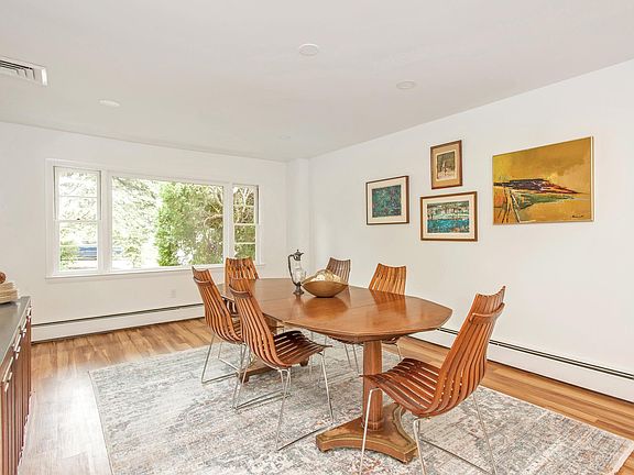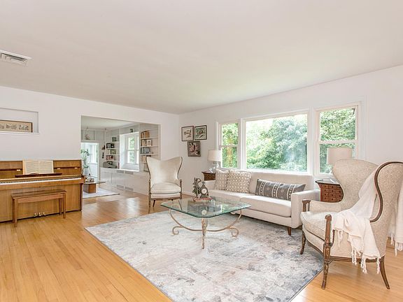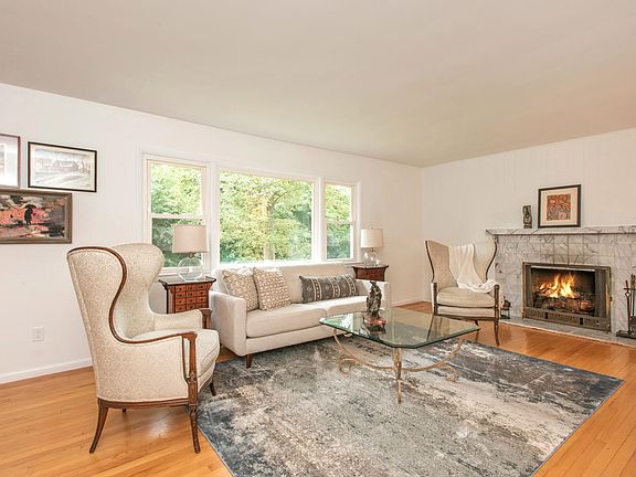 Sunny, open, airy mid-century Ranch in beautiful move-in-condition. Nestled on a tree-lined street, this tastefully renovated home offers four spacious bedrooms, three sparkling new baths, two wood-burning fireplaces, and a huge eat-in cooks kitchen w/stainless steel appliances. Ideally perched on a private half-acre, this is a perfect home for entertaining indoors and out. Spacious main level features the Master Bedroom/Bath, two bedrooms, and provides easy flow between the Kitchen, Living, Dining, and Family rooms. The large picture windows offer tons of light and overlook the lovely wooded backyard. The windowed, lower level features a massive recreation room with high ceilings, two walk-in storage closets, laundry room, wet bar, fireplace, door out to a stone patio, plus a 4th bedroom with ensuite bath. An outdoor storage room is ideal for a workshop. Close to all highways, and choice of two train stations for an easy 35-minute commute to GCT. This special home is a MUST SEE!
