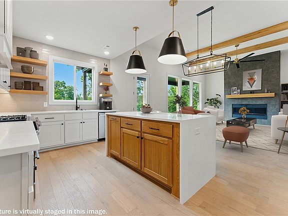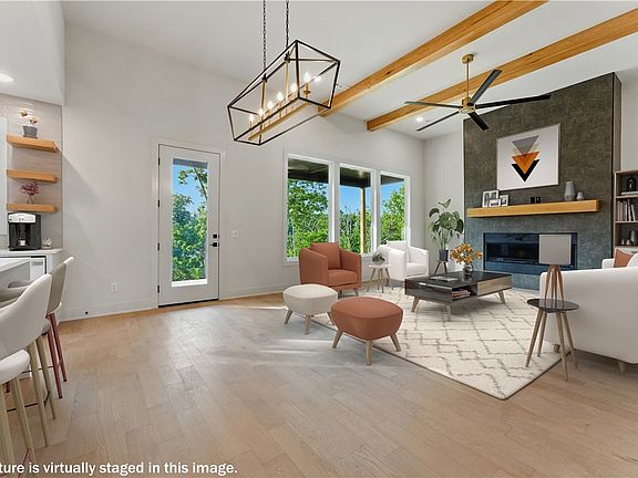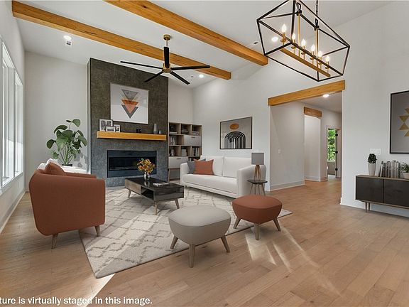 Contemporary new-construction in Bella Vista — a 2 bed, 2 bath plus dedicated office in an amenity-rich community of lakes, trails and golf. This home stands apart with oak hardwoods throughout, oversized windows bathing rooms in natural light, and designer details at every turn. The chef’s kitchen features a full tiled backsplash, quartz counters with custom oak accent and waterfall island. Oak-trimmed accent beams in the living area and owners’ suite add warmth; full tiled showers and a striking tiled accent wall with gas log fireplace and oak mantel deliver luxe finishes. Additional upgrades include a gorgeous front entry door, upgraded modern garage door with sidelight glass, covered back deck, and a full mudroom with custom cubbies for effortless organization. Move-in ready and distinctly elevated.