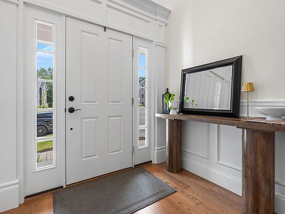 Stunning townhome in sought after Villages at Bailey’s Pond exudes grace and elegance throughout! Pride in craftsmanship is abundantly evident in all the crown moldings and wainscoting throughout. Gorgeous oak floors compliment tastefully decorated spaces, beautifully appointed bathrooms and bright spacious bedrooms. The primary suite offers a generous bedroom, custom walk-in closet and luxurious bath with outstanding modern fixtures. The gourmet kitchen featuring an oversized island, custom cabinetry, premium Bosch SS appliances and granite countertops flows seamlessly into the dining and a stylish living room, anchored by a shiplapped fireplace. Upstairs features a charming loft area, ideal for an in-home office, as well as a convenient laundry area. Access the patio and semi-private yard, oversized 2-car garage, and tap into the expansion potential of the unfinished basement featuring state of the art systems. Close to shops, dining and all major commuting routes. A True Must See!