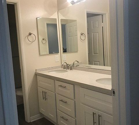 - RoomBathroomFeatures: Shower in Tub, Bathtub, Shower, Double Sinks In Master Bath, Double sinks in bath(s), Quartz Counters