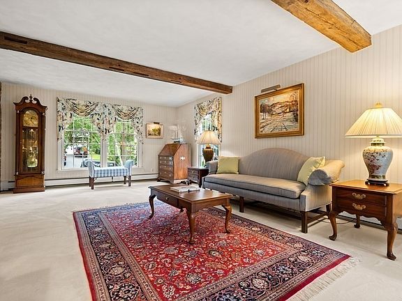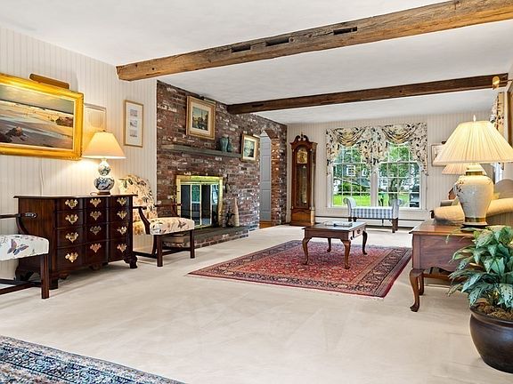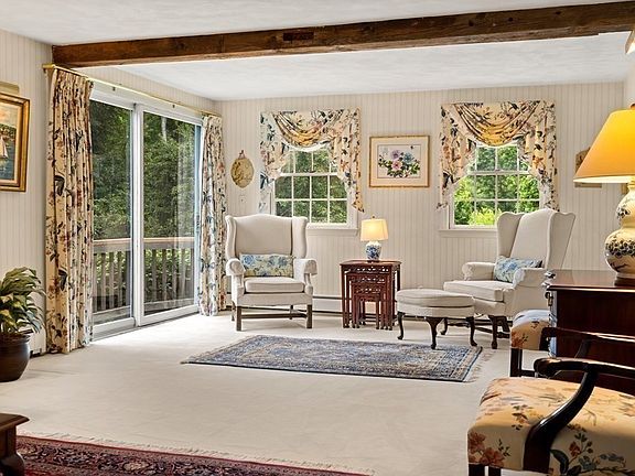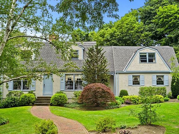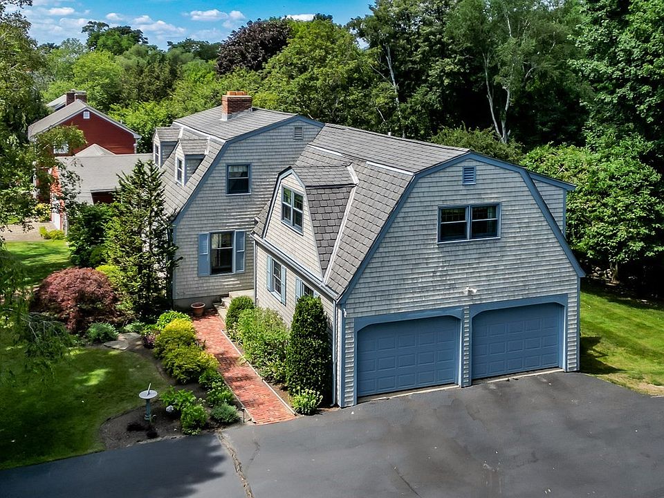 Curb appeal exudes from this beautifully landscaped, shingled dutch colonial. Located on a highly desirable tree lined street and backs up to woods of Marblehead’s Stramski Park. With access through your own back yard you’ll find a town beach, pier, woods and a playground. With over 3,600 square feet of living space, this home has space for everyone. The front to back living room and eating area of the kitchen feature exposed beams, reclaimed from a barn. A brick fireplace passes through the living to dining room which also features colonial wood paneling and built in cabinetry. Access the large wood deck that overlooks the private backyard from the kitchen. Four spacious bedrooms and two full bathrooms upstairs include a large ensuite primary bedroom with balcony and bonus small office just outside. The basement includes a large den, laundry room, storage and mechanicals. Attached large 2 car garage and plenty of parking. Great space makes updates well worth making this home your own.