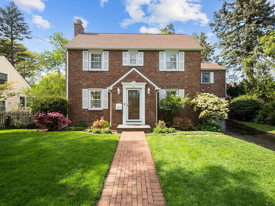 Welcome to this stately all-brick Colonial, ideally situated mid-block on a picturesque, tree-lined street. This elegant residence offers 4 spacious bedrooms and 2.5 bathrooms, perfectly blending classic charm with modern amenities. An attached 2 car garage provides convenient access to the home. Step inside to find a large gourmet style kitchen featuring rich cherrywood cabinetry, gleaming granite countertops, a center island with a double sink, stainless steel appliance, Wolf stove and a cozy breakfast area. The formal dining room is perfect for entertaining, while the inviting living room boasts a wood-burning fireplace, creating a warm and welcoming ambiance. A comfortable den overlooks the serene, zen-inspired backyard complete with an outdoor cooking station, a raised paver stone patio with a built-in fire pit, and lush exotic trees, great for relaxing or entertaining year-round. The second floor features a luxurious primary ensuite with a four-piece bathroom, a dedicated vanity area, and a walk-in closet. Three additional generously sized bedrooms share an updated full bathroom, thoughtfully designed with a modern shower and soothing body jets. Additional highlights include 200-amp electric service, central air conditioning, and a prime location within proximity to Northside Elementary School, shopping, dining, the Wheatley Country Club, and the LIRR, offering an easy commute and an exceptional lifestyle. Don’t miss the opportunity to make this beautiful Colonial your forever home!