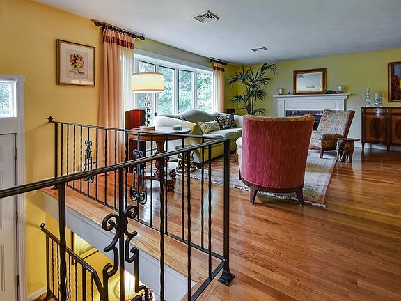 This lovely Woodcrest Acres home has been impeccably maintained and updated over the last 30+ years, and it shows both inside and out. The bright and sunny main level offers an expansive open floor plan with hardwoods throughout. A cabinet-packed cook's kitchen has tons of counter space, double wall ovens, and a bar sitting area. The DR opens to the LR where light pours in through a huge bow window. Completing this floor are 3 BR, all with double closets, and 2 full baths. The huge lower level family room features a cozy FP flanked by shelves, and a wall of cabinets with sink and fridge. There is also a 1/2 bath plus 2 rooms on this level that could be used either as BRs or home office suite. The professionally landscaped yard combines beautiful hardscape such as stone walls, patios, stone paths, and granite steps with many low-care perennials to create an amazing array of colors and textures. Set on a cul-de-sac street just over 3 miles on back roads to the Mass Pike for commuters.