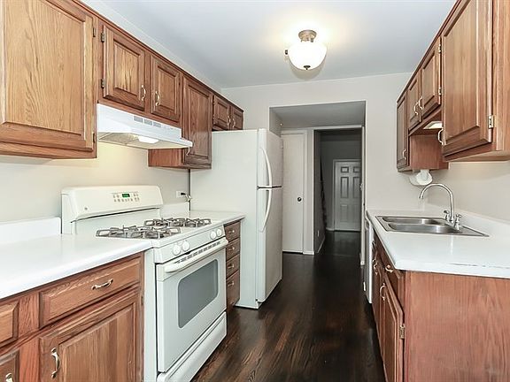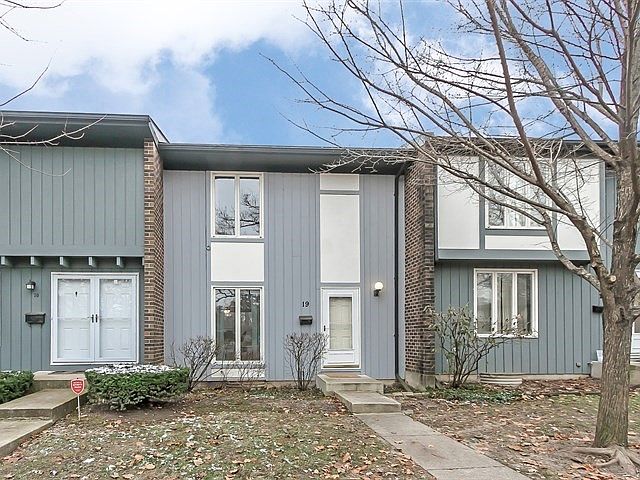 Hurry! Great interior subdivision location! Backs to wooded area! Very neutral and clean throughout! This unit comes with the best 2 oversized parking spots in the complex! Hardwood entry! Spacious living room with lots of natural light! Very functional kitchen with upgraded oak cabinetry, hardwood floors and all appliances stay! Separate dining area with hardwood floors, wall of mirrors and sliding glass doors to the private fenced courtyard with new deck! Separate flex room could be office/play area and leads into the living room! Very large 2nd floor bedrooms with neutral carpet! Master bedroom with partial walk-in closet! Full finished basement with rec room with extra recessed lighting, separate den/craft room and upgraded bath with walk-in shower, tile flooring and newer vanity! Great condition! Close to shopping, transportation, I-90 access and train!