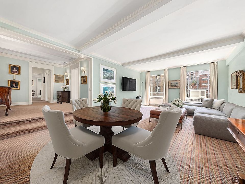 Welcome home to this elegant, south-facing, sun-filled, two-bedroom residence in excellent condition, located off Fifth Avenue, in the heart of Carnegie Hill on the upper east side and only one block from Central Park. Everything about this pre-war apartment is gracious. 9C’s layout provides seamless space and ample storage for living and entertaining. The large foyer leads into a sunny, expansive, sunken living room and dining area with high beamed ceilings. There is a bright den/study that can easily be converted into a second bedroom or formal dining room. The windowed eat in kitchen has plenty of storage, Sub-Zero refrigerator, Bosch dishwasher, marble counter tops and hardwood wide plank floors.