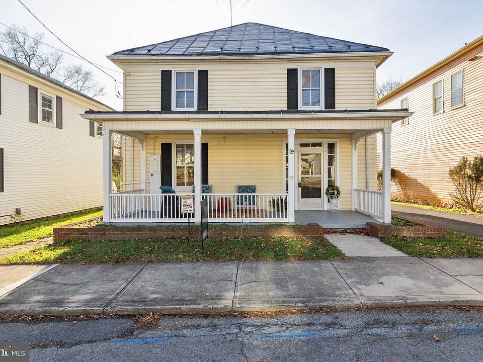 This beautiful older home built in 1877 sits on a large lot w/ several outbuildings & a fenced in 1/2 acre yard connected to the ample sized driveway. Before entering the spacious front hallway, sit on the inviting porch and enjoy the small-town atmosphere. Walk through the front door and view the incredible refinished hardwood floors that run throughout most of the home. Touch the vintage newel post at the bottom of the spacious stairway before easily ascending to the large, open upstairs hallway. Imagine your family in the 3 bedrooms w/ plenty of space and see the potential for a large bathroom with adjacent office, walk in closet, or craft room! Wander through the roomy downstairs imagining yourself enjoying a large living/TV room, dining room/living space, and eat in kitchen with adjacent small bath. As you are enjoying your tour of this home notice the double French doors between the living areas. Next to the kitchen is a bonus/mud room which provides an area for your washer and dryer plus ample room for your outdoor attire & other storage. As you exit the back door observe the large open space with several buildings including a big barn ready to house your van or other large vehicle. Survey the sunny backyard whose grass has been carefully maintained over the years but envision instead the luscious vegetables you could grow next summer! Move into this house, make it your own, and lovingly continue to bring it into the 21st century!