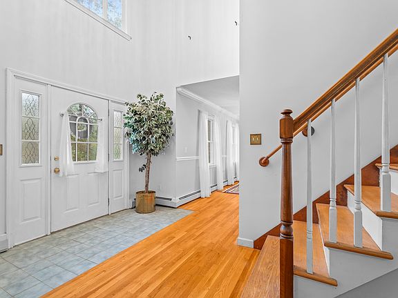 Welcome to this stately and spacious Colonial, perfectly set on a beautiful, tree-lined lot in one of Colchester's most sought-after neighborhoods. Enjoy peaceful surroundings and plenty of space both inside and out. Step inside to an impressive two-story foyer that fills the home with natural light and creates a warm, inviting first impression. The main level offers a comfortable layout ideal for everyday living and entertaining, featuring a family room with a cozy fireplace, a formal living room, and a dining room - all with beautiful hardwood floors. A convenient laundry room and half bath add to the functionality of the space. Look out from the dining area to a massive deck overlooking the private, wooded backyard with a hidden walking trail - the perfect spot to relax or host gatherings. Upstairs, you'll find generously sized bedrooms, including a primary suite with private access to an expansive 23' x 23' room - ideal for a home office, gym, media room, or additional living space. Nestled on a quiet cul-de-sac, this home offers the perfect blend of tranquility, comfort, and convenience - truly a special home.