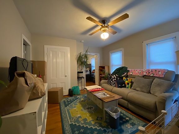 Bright and spacious second-floor apartment in a two-unit building. Hardwood floors throughout and a large eat-in kitchen with a pantry. The main bedroom includes a small walk-in closet, and the second bedroom uses a closet in the living area. Enjoy an enclosed three-season porch off the kitchen.
