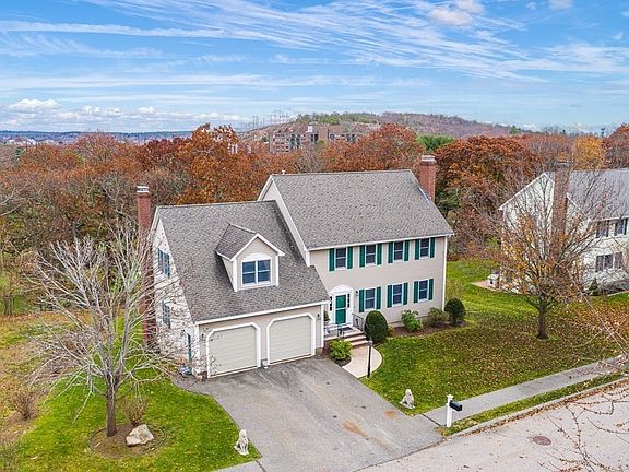 This spacious 4-bedroom home in the sought-after Country Club Estates neighborhood has everything you've been looking for! First floor has a welcoming open flow, with a fireplaced living room, adjacent dining room, sunny eat-in kitchen, and fireplaced family room. You'll love having your morning coffee on the large deck overlooking the Woburn Country Club. Primary bedroom on second floor offers en suite bath and walk-in closet. Two additional bedrooms are generously sized with nice closet space. Oversized fourth bedroom would make a great media room, play room, or remote school/office space. Large walk-out basement offers plenty of storage and an office. Two car garage steps right into the kitchen. This home offers so many great perks: alarm system, central air, irrigation system, gas heat and hot water. Ideal location with easy access to Woburn Country Club, Horn Pond Reservation, Reeves Elementary, shopping center with Whole Foods, and 350 bus to Alewife.
