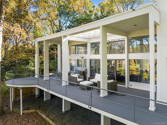 Distinctive Vuko Tashkovich Contemporary with pool and tennis court set within a peaceful and convenient locale. Turnkey. Impressive walls of glass and clerestories; soaring ceilings; gleaming hardwood floors. The current owners expertly selected high-end finishes to create a crisp and airy vibe for easy living, working and entertaining at home. Perfect balance of a striking design with a very flexible floor plan. The thoughtful layout makes all primary living possible on the main level. Three additional bedrooms, and two baths are located on the upper level. The lower level features an entertainment/rec room, full bath and guest room which flow effortlessly out to the inground pool. Enjoy views of nature from every room. A dramatic wraparound deck overlooks gardens, rolling lawns, and woodlands providing cool spaces for vacationing from home. Easy access to Scotts Corners, train, restaurants, shopping, school, park, and hiking. One hour from Manhattan.