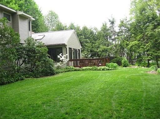 BUYERS FINANCING FELL THRU! Cul-De-Sac Location - Walk to Town! Extremely well maintained 8 Room NY Colonial with 18x22 Family Room, vaulted ceilings & skylights. Sliders to deck overlooking beautiful private backyd w/views of Houghtons Pond. Custom Cabinet Kitchen w/hdwd floor & corian counters & remodeled Half Bath. Pella windows in front incl 2 picture windows. Hardwood floors in LivRm, stairs & all 4 good size bedrooms. Basement has small finished area.Large shed (2yrs old) for storage.