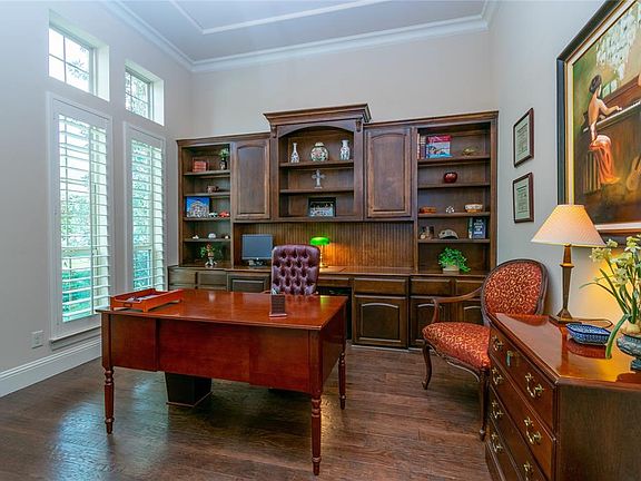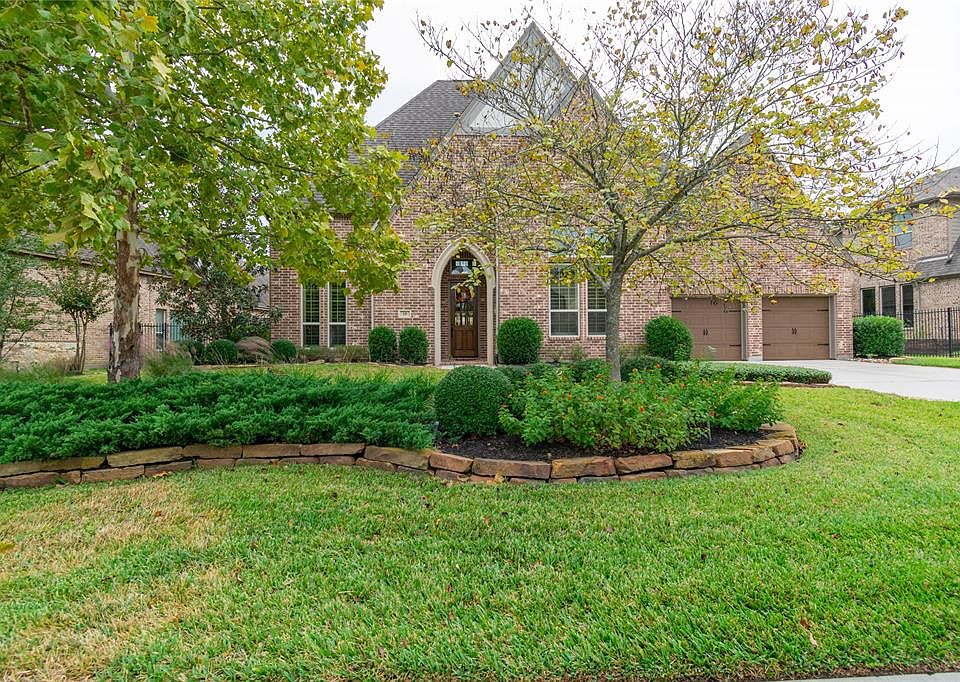Impressive stucco and brick, Darling Homes quality built beauty 4 bed, 3.5 bath, 3 car garage home with soaring ceilings in the family room and huge outdoor covered rear patio with outdoor grill and fire pit. Beautiful built-ins, covered patio on an oversized lot, and all on a cul-de-sac street! Open and bright floor plan, living room with oversized windows overlooking the yard.Great kitchen, large island with storage and separate breakfast area, granite countertops, stainless steel appliances, large walk in pantry. The Master bathroom suite has an enormous walk-in closet that opens to the laundry room for convenience and a luxurious master bath. Highly sought after first floor second bedroom and full bath with privacy for guests. This oversized homesite offers plenty of room for a pool and outdoor fun. Nestled in one of the most popular cul de sacs in Creekside Village and just steps away from Spincaster Park! NOT Flooded during Hurricane Harvey Access to all Woodlands Park Pools