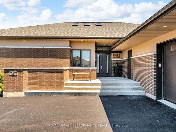 Modern and elegant 3+2 bedroom home with walkout situated in the prestigious Arrowhead Estates. A world of sophisticated design awaits you in this meticulously crafted modern home. The open-concept living area seamlessly flows into a gourmet kitchen. It features solid walnut cabinetry, stainless steel appliances, pantry and quartz countertops. An abundance of LED and natural lighting accentuate the clean lines and minimalist aesthetic. The ledge stone fireplace is the centrepiece of the spacious living room. The primary suite, complete with a spa-like ensuite bath, tiled shower and walk-in closet. The 2nd and 3rd bedrooms with ample closet space. Gaze at the morning sunrise from the large resin deck with glass railings. A perfect space for entertaining or relaxing. Finished walkout with in law suite potential, boasts a heated flooring, functional kitchen and breakfast bar, family room with gleaming tile, 3pc bathroom, 4th and 5th bedroom, fitness room and laundry. Other notables: Power skylights, solid wood doors and trims, ICF construction, hot water on demand, 3 car garage with heated floor and room for toys, landscaped. With over 5000 sq feet of finished living space, the possibilities are endless.