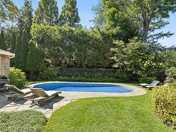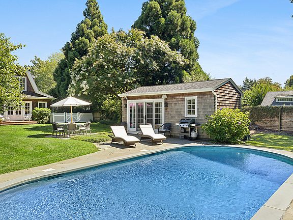 Beautifully renovated 1915 traditional in East Hampton Village, just a couple blocks into town and a moment's drive to the ocean. Yet tucked away on a quiet tree-lined street; this home is ideal for families who want a peaceful sunlit summer getaway in the heart of the Hamptons. Offering three bedrooms and three baths. The private ground-floor guest bedroom opens out to the backyard through french doors. On the second level, the primary suite is spacious and surrounded by windows, filled with natural light. Across the landing is the second guest bedroom, also ensuite and surrounded by windows. The layout of the main floor allows space for the whole family and guests. Upon entrance through the mudroom foyer, there's a charming sitting room and dining area. Then a newly renovated open design chef's kitchen with marble countertops and stainless steal appliances that flows into the main living area. French doors open out to the garden and heated gunite pool where you can cook out on a blue stone patio. The renovated pool cabana, perfect for entertaining, has a full bath, wet bar, and pull-out sofa. This home is updated, spacious, beachy and refreshing; conveniently located a couple blocks from the train station and all East Hampton Village has to offer.