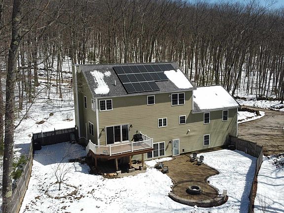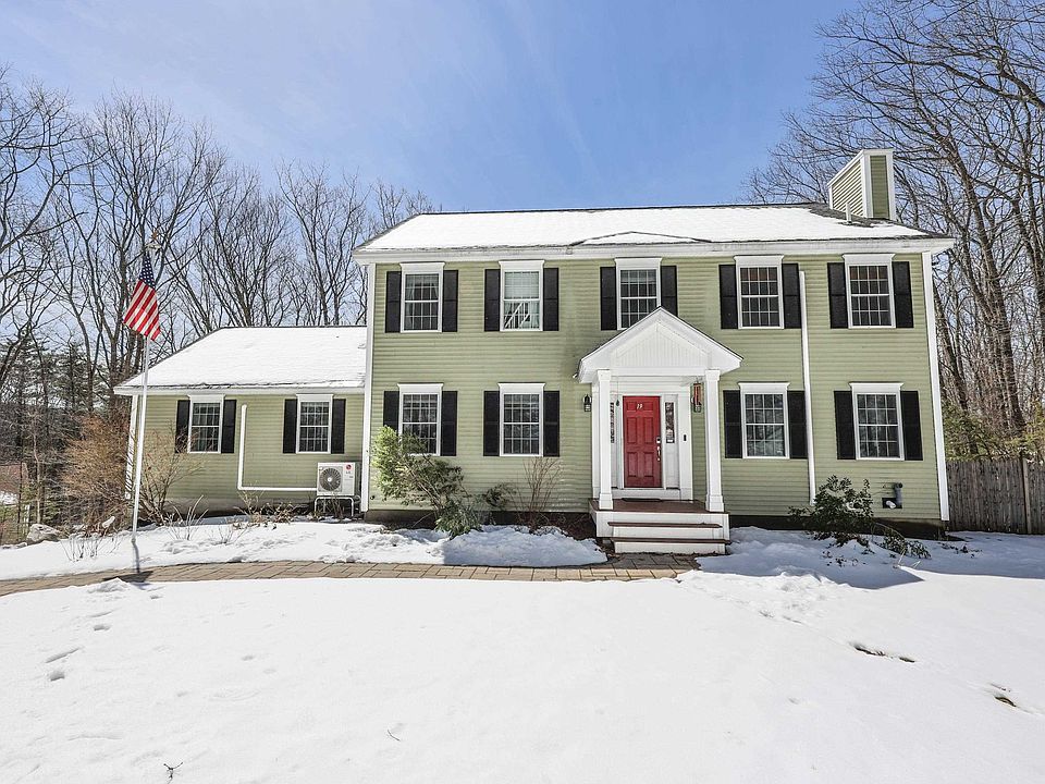 Magnificent Colonial home situated on a serene 2.98 acre wooded parcel. Enjoy the natural beauty that Weare NH has to offer while living in style. This charmer offers excellent appeal sporting a new granite hardscape, custom stone patio, and enhanced lawn area. The interior delivers with a expansive chef's kitchen built for entertaining. The kitchen is adorned with new gas stove, stainless appliances, custom cherry cabinetry, granite counters, drop pendant lighting, and acts as the center of the main floor. Off the kitchen you will find a large formal dining area, first floor laundry and guest bath. The first floor also offers an eat-in breakfast area with direct access to an upgraded Trex deck overlooking the rear acreage. When you're ready for some peace and quiet take advantage of the cozy study with recessed lights and a built in gas fireplace. The other end of the main level has an open concept great room with cathedral ceilings, pellet stove and amazing natural lighting. Upstairs this home offers is a natural 4 bedroom layout that has an expansive primary suite, walk in closet, ensuite bath w/stand up shower, soaking tub and dual vanities. The remaining bedrooms showcase hardwood flooring, ample closets and bright windows. Not enough...? This home was professional painted recently, has new high efficiency multi-zoned mini-splits system and has it's own solar array on 1:1 net metering. Bonus room in basement. Delayed showings start at Open House 4/13 and 4/14 from 12-2
