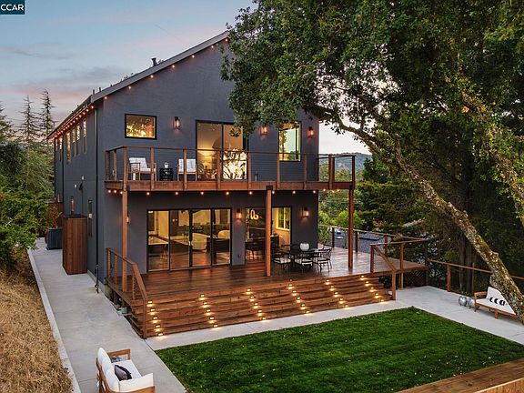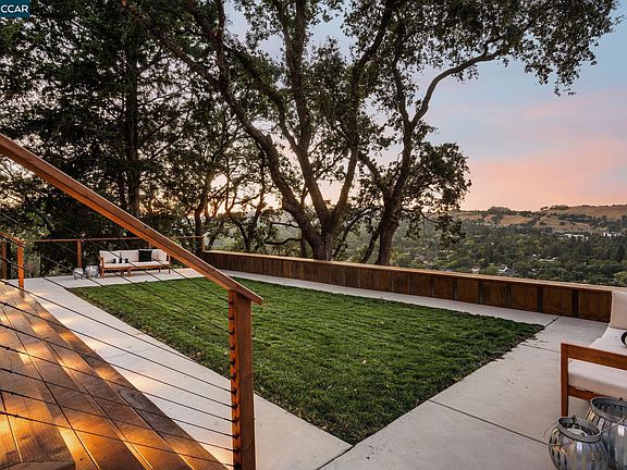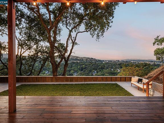 Discover luxurious living at this newer construction home rebuilt in 2022 with panoramic views of Walnut Creek! This home showcases exceptional craftsmanship throughout. Step inside the grand foyer which flows into a spacious open-concept living area with soaring ceilings and expansive walls of glass capturing the stunning cityscape. Main level includes an office full bathroom, and a living/family room with a dramatic fireplace. The gourmet kitchen boasts modern quartz countertops with a sizable island, sleek cabinetry, and a Zline 6-burner gas stove. Indoor and outdoor spaces blend seamlessly with a wrap-around deck and a flat sod area perfect for soaking in the vistas. 4 bedrooms and 3 baths upstairs including 2 primary en-suites. Main primary suite is a sanctuary with a floor-to-ceiling tiled fireplace, walk in closet and private balcony with an elevated "helicopter" view of the city. Exceptional touches include wide-plank wood flooring, designer lighting and high-end finishes. Modern conveniences include 3 storage sheds, outdoor speakers and electric car charger. Located minutes from downtown, shopping, schools, Kaiser, and freeways. Enjoy the serene court location and desirable Walnut Creek School District.