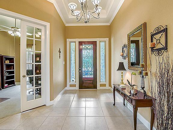 Well maintained Village Picasso Plan! Home features tile in the main living area. Plantation shutters, gourmet kitchen with stainless steel appliances, covered front porch and back patio. Wall of windows make the home light and bright. Home on reserve, no neighbors directly behind. Beautiful pool. Flexible floor plan with one oversized bedroom upstairs that could be used as a game room, or media room.