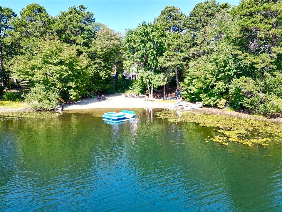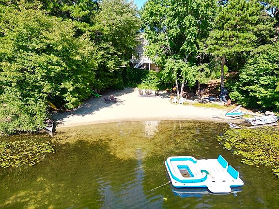 Welcome to your pond-front retreat, where every day feels like a vacation. This fabulous double-lot property is a true oasis, offering ~118 feet of private beach front & endless opportunities for swimming, fishing & kayaking. You'll love the year-round scenic views and the serene atmosphere. Step inside and be greeted by an open-concept first floor, featuring hardwood floors on the main level. The cozy living room with its gas fireplace flows into the dining room & an eat-in kitchen, creating the perfect space for entertaining. A convenient half-bath completes this level. Upstairs, you'll find two generously sized bedrooms w/ walk-in closets an oversized bathroom w/ laundry & a separate shower room. The finished, walk-out basement with pond views is a versatile space--perfect for a playroom, home office, or guest suite. Outside your private beach awaits. A dedicated fire pit area is ideal for relaxing evenings while a small cabin with bunk beds provides perfect spot for visiting guest.