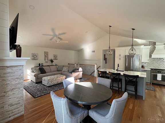 Agent is owner. Welcome to 19 Greenhouse Lane a light-filled home combining modern comfort with peaceful green space views. The open-concept main level features a designer kitchen with ample cabinets, quartz countertops, & an island that flows into the dining room & the great room with fireplace. Hardwood floors run throughout, with tile in baths and mudroom. Step onto the upper deck to enjoy serene wooded views. The vaulted primary suite has a walk-in closet and en suite bath; a 2nd bedroom also includes an attached bath. The walkout lower level is ideal for entertaining with a wet bar, wine fridge, ice maker, fireplace, and access to a shaded patio. A 3rd bedroom, bath, workout room, storage, & laundry complete the space. Enjoy efficiency with a gas tankless WH and high-e furnace. Beautifully landscaped common grounds and a friendly, private neighborhood with gated access to Wasson Way make this home a true retreat in the heart of Cincinnati. Most furniture included. More pics soon