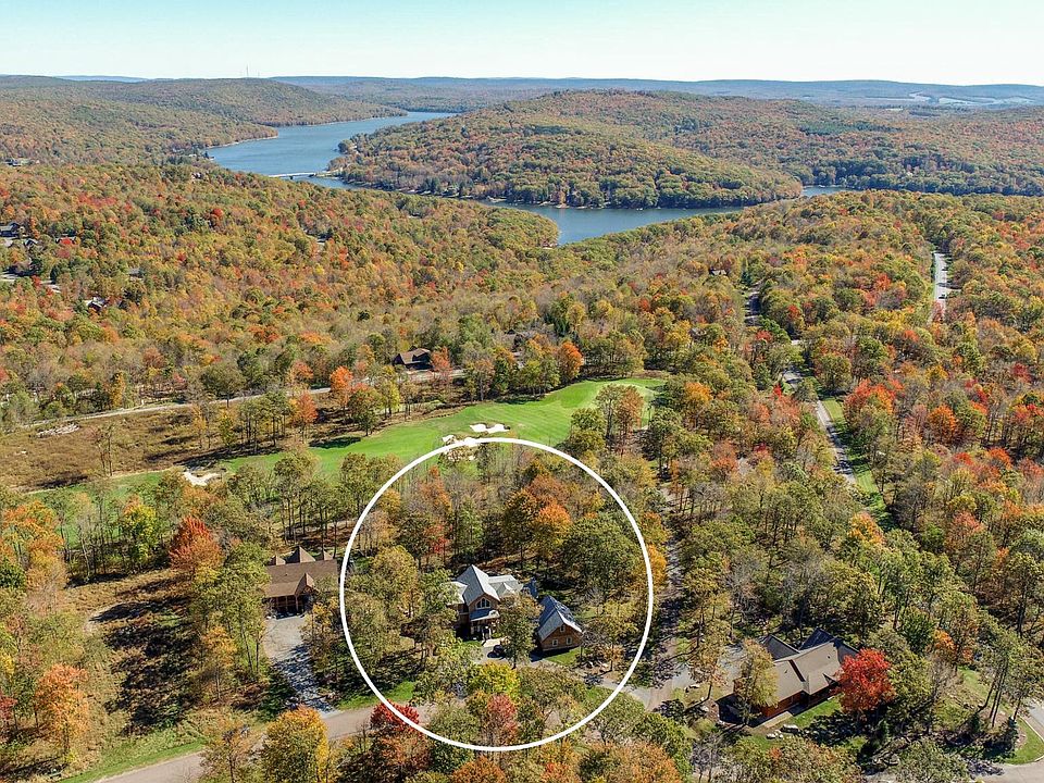 Located in the prestigious "Biltmore at Lodestone" atop Wisp Mountain, this 2021-built home blends modern architecture with the warmth of a mountain lodge. Spanning 4,416 square feet, it offers five spacious ensuite bedrooms and seven total baths, including a primary suite with a spa-style walk-in shower and whirlpool tub. The open main level showcases vaulted ceilings, a stone fireplace, and walls of glass framing sweeping views of the golf course, lake, and mountains. The gourmet kitchen features upgraded countertops, stainless appliances, and a large island that flows into the dining and family areas. The walk-in pantry is plumbed for an additional refrigerator, ideal for an owner’s fridge or extra storage. Just beyond, an all-season covered porch with a stone wood-burning fireplace, seating area, and TV extends the living space outdoors year-round. Three finished levels provide generous space for family and guests. The loft lounge offers a quiet retreat with its own wet bar and mini fridge, while the lower level includes a full gaming area, wet/dry bar, mini fridge, and secondary living space for entertaining. The attached two-car garage includes storage space above, and a pull-through driveway allows easy access for multiple vehicles. The 0.65-acre lot is beautifully landscaped, remarkably level for its mountaintop location, and designed for both function and enjoyment. Outdoor highlights include stone hardscaping, a built-in fire pit, and a hot tub overlooking the fairway and lake. A whole-house Generac generator provides reliable comfort in every season. With a proven rental history, refined finishes, and a thoughtful floor plan, this property delivers modern craftsmanship, mountain views, and four-season living just minutes from Wisp Resort and Deep Creek Lake.