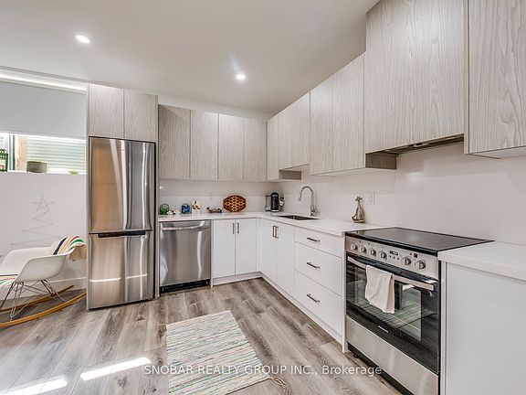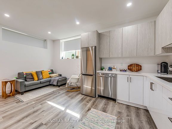 Newer 1-Bedroom Basement Apartment! Bright and spacious layout featuring 9 ft ceilings, quartz countertops, custom cabinetry, and stainless steel appliances. Includes private 3-piece bath, in-unit laundry, and dedicated parking. Prime location with easy access to Downtown Toronto, Hwy 401, shopping and GO Transit. Perfect for professionals or small families.