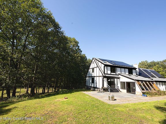 Nestled on a secluded Catskills sanctuary, this residence seamlessly blends historic charm with contemporary living on 4 acres of land. A historic bluestone Quarry sets the stage for a unique retreat, complemented by a ~$100k 22.7 kWh Tesla solar system with 4 powerwall batteries and 64 solar panels, showcasing a commitment to sustainability and a nominal electric bill.