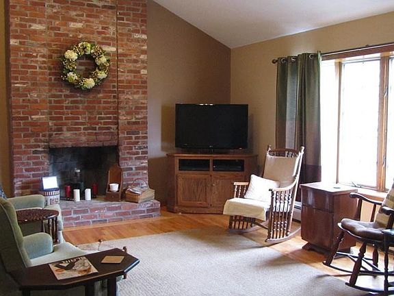 One owner custom built 6 room 3-4 bedroom 2 bath Contemporary split in center of town neighborhood features vaulted ceilings in kitchen and fireplaced living room which add to the open concept of this home/deck off kitchen-dining area overlooks private back yard. Perennial gardens sprinkle the property/Master has split bath/Lower level features fireplaced family room with additional bath could also be used as a private master bedroom/separate laundry room/ Easy access to major routes.