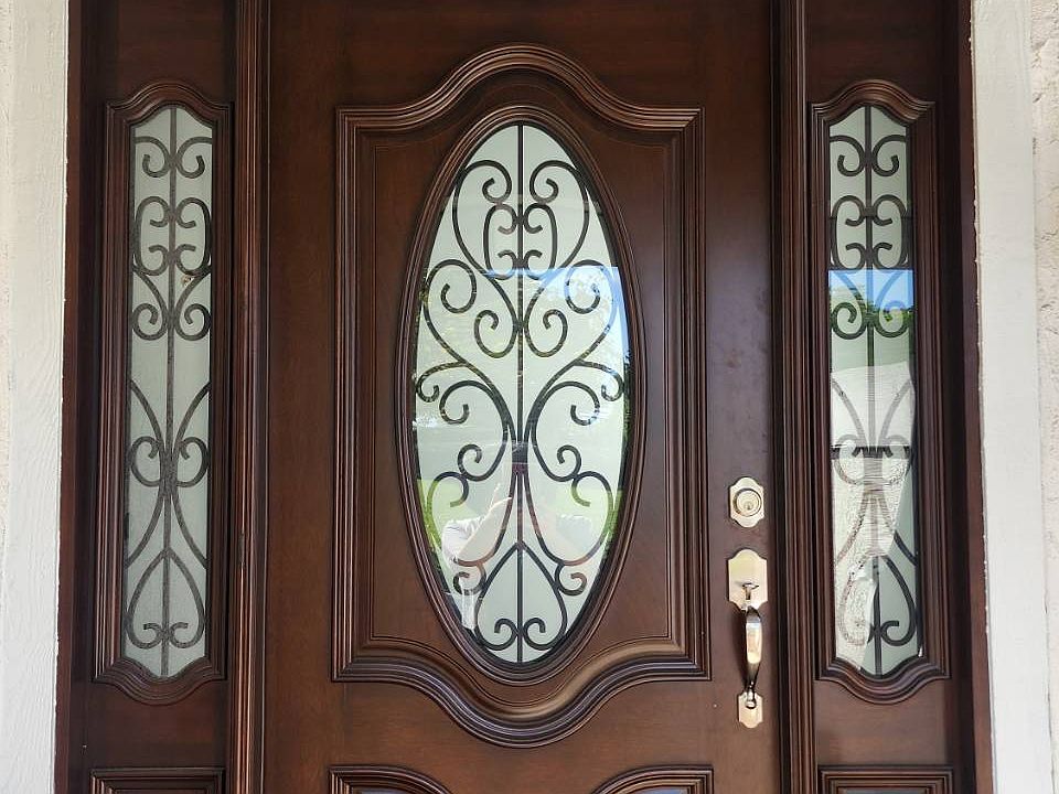 Elegant New Front Door: A premium solid-wood door with decorative wrought-iron glass accents provides beautiful curb appeal and added securities.