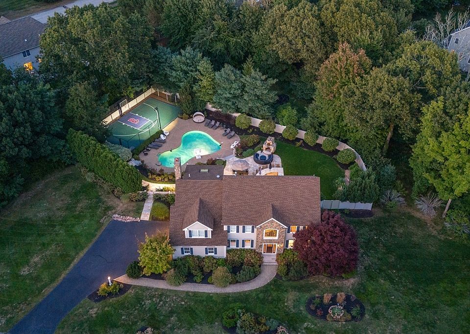 Introducing 19 High Ridge, nestled on 1 acre on a serene street within the esteemed Morningside River Estates. This home features 5 bedrooms, 4.5 bathrooms, and over 5,200 SF of meticulously renovated living space, completely gutted and redone in 2016. Highlights include a heated salt water gunite pool, outdoor kitchen with a Wolf gas grill, sports court, home gym, and a 2-car garage—just the beginning of a long list of amenities. The pristine white gourmet kitchen is equipped with SS Thermador appliances, a 16’ Granite island, Marble/glass tiled backsplash, dual dishwashers, and a breakfast nook with external access to the rear deck. A stunning coffered ceiling with wooden shiplap extends from the kitchen to the family room. The second floor houses 4 large bedrooms and 3 full bathrooms, including the master suite designed by Laine Jones with a luxurious en suite bathroom featuring French pocket doors, a 2-person jacuzzi tub, and a Koehler smart shower!
