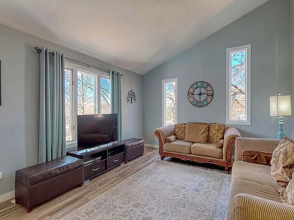 Bigger than it looks, this beautiful home features vaulted ceilings and an open floor plan. Updated eat-in kitchen features new granite counter tops and stainless appliances. The interior is updated with fresh paint, beautiful laminate flooring and new tile flooring in both full bathrooms. The second floor boasts a spacious master bedroom with dual closets, 2 large bedrooms, and full bath. The sliding door off the kitchen opens to a deck large enough for a grill and full patio set. The lower level offers a large rec room and 2 additional rooms to be used as bedrooms and/or office space. Circle drive makes parking easy! Close to Fox Lake and all that it offers!