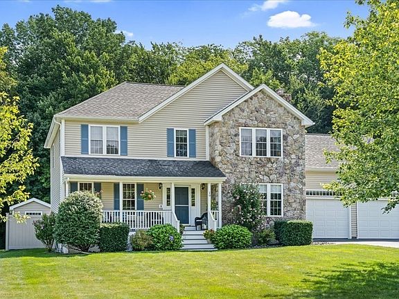 Located in desirable Hilltop Farm Estates, this property provides stunning curb appeal with a gorgeous farmers porch and stone facade. Offering 4 bedrooms and 2.5 bathrooms PLUS a stunning outdoor oasis! The eat-in kitchen showcases maple cabinets, tile backsplash, center kitchen island and stainless steel appliances. It opens into the wood stove living room. A separate dining room and half bathroom complete the first floor. Located upstairs is the primary bedroom with large walk-in closet and master bathroom with a jetted bathtub and standup shower. Three additional bedrooms and a full bathroom round out the second floor.The private backyard is ideal for relaxing or entertaining friends and family! Featuring an heated salt water in-ground pool, hot tub, patio and even a pool house. House is equipped with an irrigation system, water softener and an energy efficient hydro air heating system. Located in a picturesque and quiet neighborhood and convenient to major routes and highway