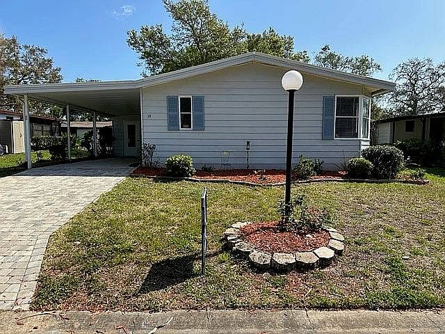 This home is truly beyond beautiful! It boasts a spectacular lakefront view, 2 bedrooms, and 2 baths. The home features newer waterproof vinyl plank flooring, a more recent AC system, fresh paint, and numerous additional upgrades. From the moment you drive up the cobblestone driveway, the allure of beautiful trees and the serene lake view captures your attention. Upon entering the home, the living room warmly welcomes you with abundant space and ample natural light. The kitchen is a true highlight, complete with a pantry, plentiful cabinetry, and three bay windows offering panoramic views of the lake. This is a space where you can cook, entertain, and simply relish the view. A convenient breakfast bar complements the kitchen, and all appliances are included. Adjacent to the kitchen, the dining room features built-in elements for displaying your cherished items. Both bedrooms are generously sized, providing enough room for a cozy reading nook. The master ensuite is a true retreat, boasting his and her sinks, a vanity, a large mirror, and exceptional lighting. Adding to the convenience, the designated laundry room is spacious and offers a desk, windows, and cabinets. A door leads outside, allowing for ease of access. The enclosed porch is perfectly positioned facing the lake, providing a serene space where you can relax in comfort, connect with nature, and fully embrace the joy of living in the sought-after 55-Plus Gated Community of The Falls at Ormond in this exquisite lakefront home. To ensure your peace of mind, a 4-point inspection and a 12-month home warranty are thoughtfully included.