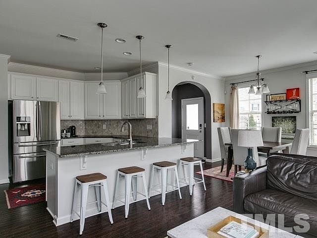 This Thompson Ridge End-Unit Townhome has all the bells and whistles. Energy star certified, open floor plan, windows galore, gas fireplace, oversized master suite with coffered ceiling, 2 oversized walk-in closets, garden tub and walk-in shower, hardwoods on 1st and 2nd floors, tile in upstairs bathrooms and laundry room, granite kitchen countertops with marble tile backsplash, SS appliances, gas cooktop with double ovens, 2-car garage, screened patio and aluminum fencing. Located 1.5 miles from Duke.