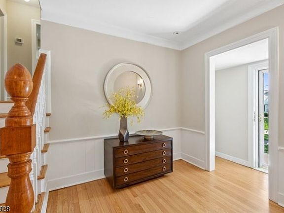 This picturesque custom-built home features 4 BR and 3 Baths and is filled with warmth and character throughout. Located in one of the most desired neighborhoods of Chatham, this home is centrally located near top-rated schools, downtown shopping and dining, and NJ Transit. A welcoming foyer draws you into the main level, highlighted by gleaming hardwood floors and original custom millwork. The formal living room features a cozy wood-burning fireplace, built-in shelving and beamed ceiling, with an adjacent open area that's perfect as a sitting room, study or play room. The dining room is framed by amazing views of the backyard which features an award-winning English Garden. French doors take you into a stunning gourmet kitchen with Viking appliances and features a 12' ceiling with detailed architectural molding, oversized windows overlooking the Garden, and imported European flagstone flooring with radiant heat. The flagstone flooring continues down to the lower level rec room family room encompassing a fantastic flexible space with adjoining full bath that can easily accommodate a gym, home office, or private guest suite. The heart of this home is the incredibly peaceful backyard space. A deck off the dining room bridges your indoor and outdoor spaces seamlessly. This property has been impeccably maintained, with recently refinished hardwood flooring on all but the top level, and fresh neutral paint throughout. This home is just waiting for you to unpack and enjoy its classic charm.