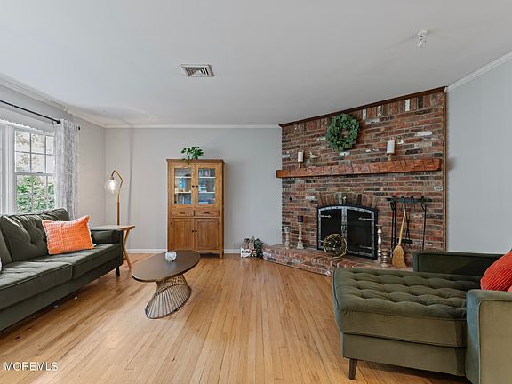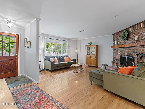Sprawling 4 bed 3 bath ranch with nice sized rooms. Eat-in kitchen, LR with fireplace and hardwood floors,DR with hardwood floors, 20X14 mastersuite, large 24X14 family room, beautiful hardwood floors, enclosed porch and paver patio, mature landscaping for privacy, laundry room with one car garage. Located on a 125X100 lot. Oceanport Community Center Park and library across the street. Ocean beaches very close, LS train station just minutes away