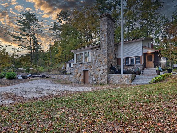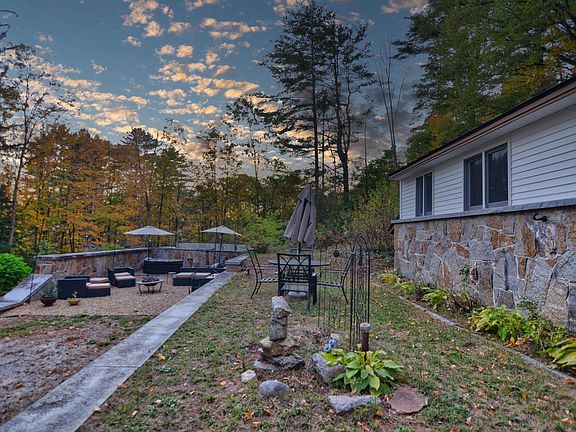 This will be the most intriguing home you'll see, and you will love it! Stunning south-facing stonework is prominent as you approach up the drive and continues into the gorgeous great room, drenched in sunlight and offering southern views of Kearsarge Mountain, an impressive fireplace, and vaulted ceilings. A screened-in entry porch opens to the mudroom, which leads into the custom kitchen featuring white birch cabinets, granite countertops, a walk-in pantry, and a laundry room. A central living room with a pellet stove creates a great communal and social space, and the first-floor primary bedroom is complete with an en-suite bathroom and walk-in closet. There is also an additional guest or office space with its own entrance from the porch. Upstairs, there are two large bedrooms with vaulted ceilings, built-in shelves and nooks, and an art room. The recently renovated bathroom features a clawfoot tub and a whiskey barrel sink. This home is generator-ready, has a new hot water heater, a wood furnace, and central air conditioning. The land borders and provides direct access to the fabulous Proctor Academy and its woodlands full of year-round trails, including a mountain bike course. Showings begin at the open house on Saturday, October 4th, from 10:00 to 12:00.