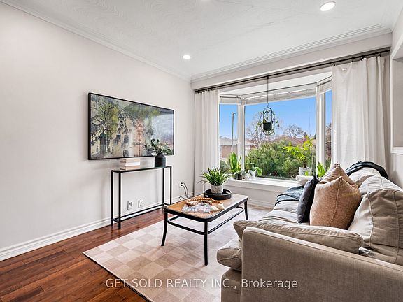 Large bay windowGleaming hardwood floorsWell equipped kitchenStainless steel appliancesThree generous bedroomsSpacious finished basementSeparate entrance