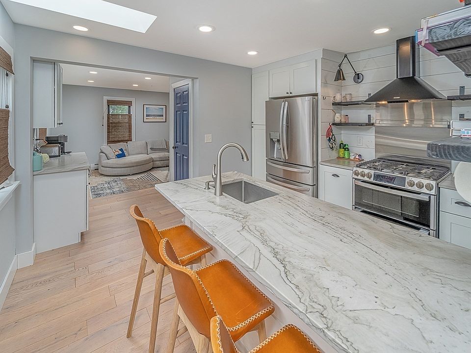 Welcome to Newburyport! This 4 bed, 2 bath single family home offers the perfect blend of coastal living with small town charm. 19 Jefferson has a prime location with an award winning school district. Situated a short stroll downtown & picturesque waterfront, this home provides unparalleled access to everything Newburyport has to offer. Step inside to a home where modern design & everyday comfort coexist perfectly. The beautifully designed kitchen is the heart of the home with high-end stainless steel appliances, quartz countertops, and a breakfast bar. This home is complete with a rare and highly sought-after feature: a luxurious 1st floor master suite. The upstairs holds 3 great sized bedrooms and another full bath. Beyond the main living areas, the basement is a blank canvas, offering a perfect opportunity to build equity. The deck, located directly off the private yard, is the perfect space for outdoor entertaining, grilling, or simply relaxing in the salt air after a long day.