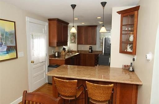 Delightful seaside living complete with ocean views from the Master Bedroom deck! Beautifully updated kitchen with cherry cabinets, granite counters and ss appliances. Living room includes a gas fireplace and opens into a four season sunroom. Hardwood floors througout. Entertaining is made easy with the open floor plan and gracious front porch. Short walk to four beaches and park. This well maintained home offers low maintenance vinyl siding, new roof in 2003 and insulation installed in 2009