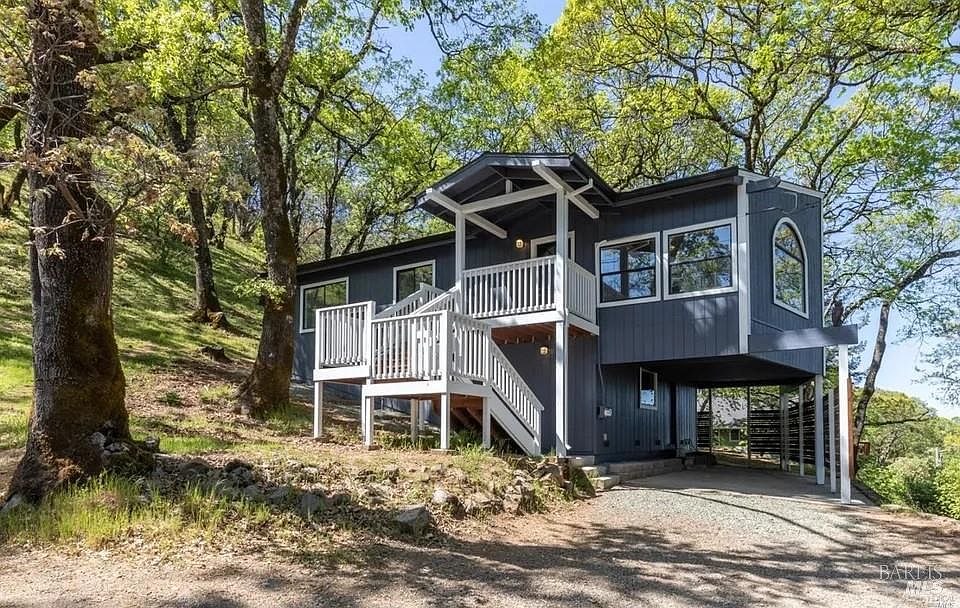 Nestled on a gentle hill among oak trees in Napa Valley's Circle Oaks, this updated 3-bedroom home offers peace and comfort yet just 20 minutes from downtown Napa. The light-filled living room features high ceilings and large windows with beautiful views. A remodeled kitchen with stainless steel appliances, bar-height counter, and ample storage opens to the living area and wraparound deckperfect for indoor-outdoor living. All three bedrooms have newer carpet and spacious closets. The full bath is updated, and there's a separate laundry room with side-by-side washer/dryer. Recent upgrades include central air/heat, water heater, gutters, paint (inside & out), and a carport. With public utilities and access to scenic hiking trails, this home makes a perfect primary residence or weekend escape. Enjoy fresh air, serene surroundings, and the best of Napa Valley living!