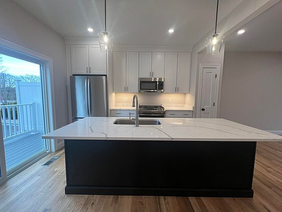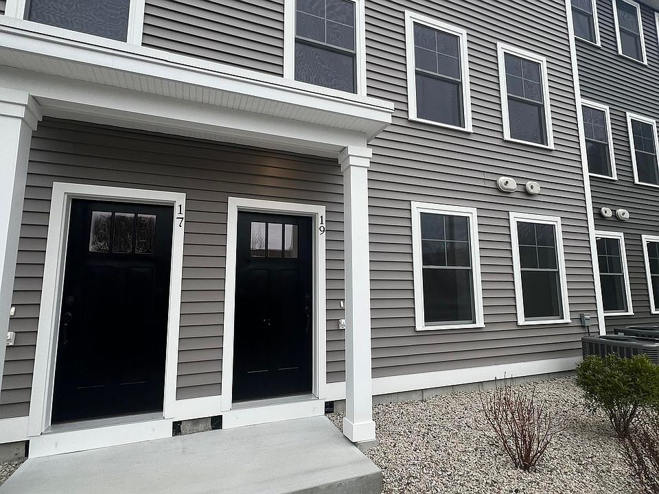 NEW CONSTRUCTION! Welcome to Juniper Commons, a new 50-unit townhome pocket community in a great Portsmouth location. Abutting vast wooded conservation land, this beautifully landscaped community will feature three bedroom, three bath townhomes. The two-car garage entry leads into a finished first floor space ideal for an office, or mud/storage area. Up the hardwood stairs the living level is an inviting open layout with high ceilings, hardwood flooring, and great natural lighting. The spacious living and dining area opens to beautifully finished kitchens including cabinetry to the ceiling, pantry storage, oversized island, stainless appliances, and high end stone countertops. Sliding glass doors off the kitchen leads to a private deck space. The third floor has three bedrooms and two baths, including a primary suite with walk-in closet, and bath with tile shower and glass enclosure. Hardwood flooring throughout all bedrooms and living areas. Central air. Professionally landscaped community with community park, sidewalks, and trail leading to the lush wooded open space behind the homes for all to enjoy!