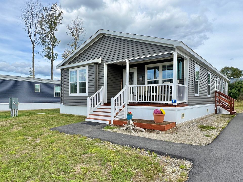 Welcome to Silver Lake Estates, a premier 55+ community located in coastal Bucksport Maine. This quality Titan made home features many upgraded amenities including sheetrock walls, real-wood cabinetry & trim, premium doors & 8' ceilings. From the covered porch to an open concept layout, step into a spacious living room/kitchen with trey ceiling, well-equipped kitchen with center island, corner pantry, stainless appliances, dining area & upgraded flooring throughout. The primary suite offers a full bath with tile walk-in shower & walk-in closet. Second bedroom with large closet & third bedroom/den, mud room side entry with laundry. Efficient propane heat & direct propane grill connection on the covered porch. Additionally, you'll find a paved driveway, backyard & a list of enjoyable amenities provided such as lawn care, plowing, upscale community center with full kitchen, gathering area with regularly scheduled activities & events, on-site mail room & access to nearby walking trails, boat dock, community garden & fire pit! Come enjoy the great lifestyle that Silver Lake Estates has to offer.