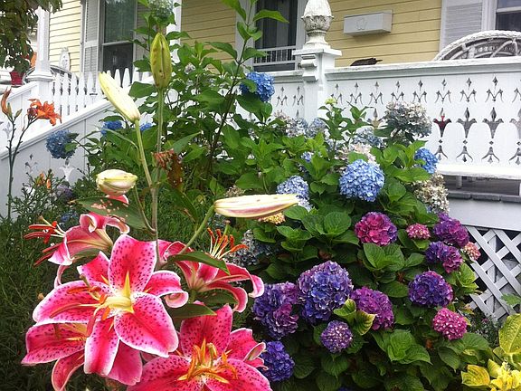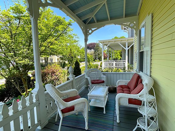 This lovely Victorian home welcomes you for the fall season! The abundant landscaping and period porch welcomes you to this charming Newport home. The first floor offers a casual family room, a well-appointed kitchen, an elegant sitting area, dining room and a lovely full bathroom. There is a private deck ready for casual dinners or entertaining. Upstairs offers 3 bedrooms, 2 full bathrooms and a study. A guest house and parking for 2 small-medium sized cars round out the amenities. The interior and exterior restoration seamlessly blends historical charm w/ fresh modern comforts. This summer vacation is ideally located within walking distance to Bellevue Avenue, downtown and vibrant Broadway. With its rich architecture, spacious layout, and prime location, this distinguished property at 19 Kay Street invites you for a memorable stay in Newport!